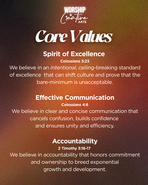 There are a few ministries that still need to finish the written portion. Here is the 516 Creative Ministry/Team Essentials Book as well as the template/guide that's downloadable: